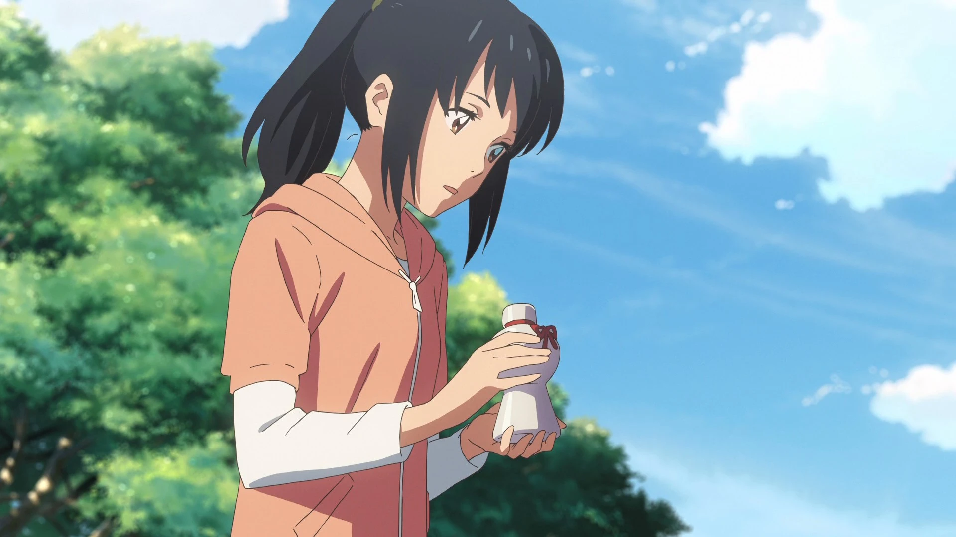 Mitsuha is the daughter of the mayor of a small mountain town. She’s a straightforward high school girl who lives with her sister and her grandmother and has no qualms about letting it be known that she’s uninterested in Shinto rituals or helping her father’s electoral campaign. Instead she dreams of leaving the boring town and trying her luck in Tokyo. Taki is a high school boy in Tokyo who works part-time in an Italian restaurant and aspires to become an architect or an artist. Every night he has a strange dream where he becomes…a high school girl in a small mountain town.